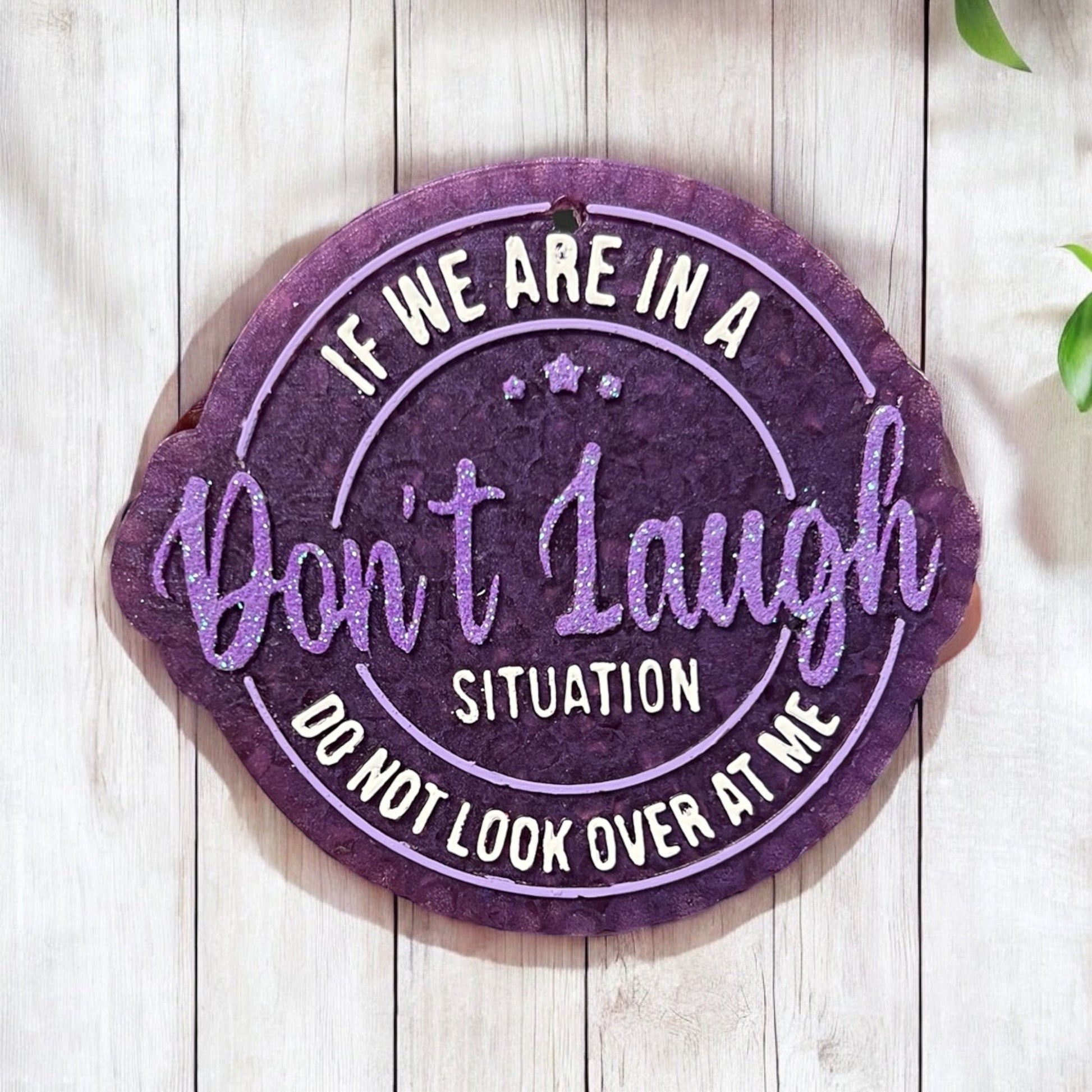 Revamp your car with our Don't Laugh Freshie! Our car freshie keeps your vehicle smelling fresh and clean, without any unwanted giggles. Say goodbye to stale odors and hello to a delightful fragrance. Drive in style and freshness with Don't Laugh Freshie. Freshness guaranteed!