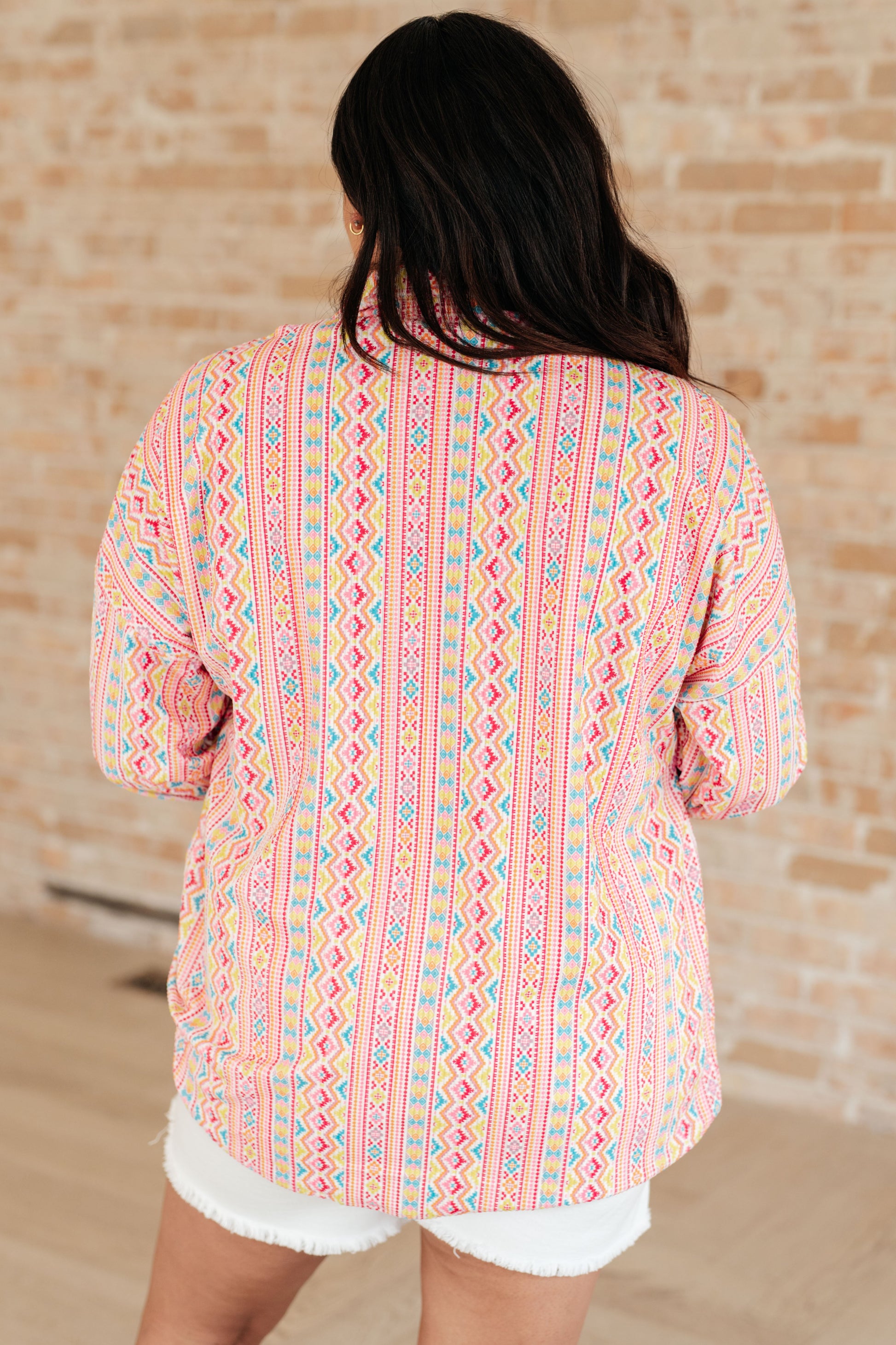 Put a geometric spin on your casual wardrobe with our Imagine When Corduroy Button Down shirt. This wearable work of art is made of stretchy corduroy fabric, so you can step out in comfort, and features a gorgeous striped pattern that'll make 'em gasp! With a button front and handy side pockets, you won't want to take it off! Let's see what you can imagine when you wear it!