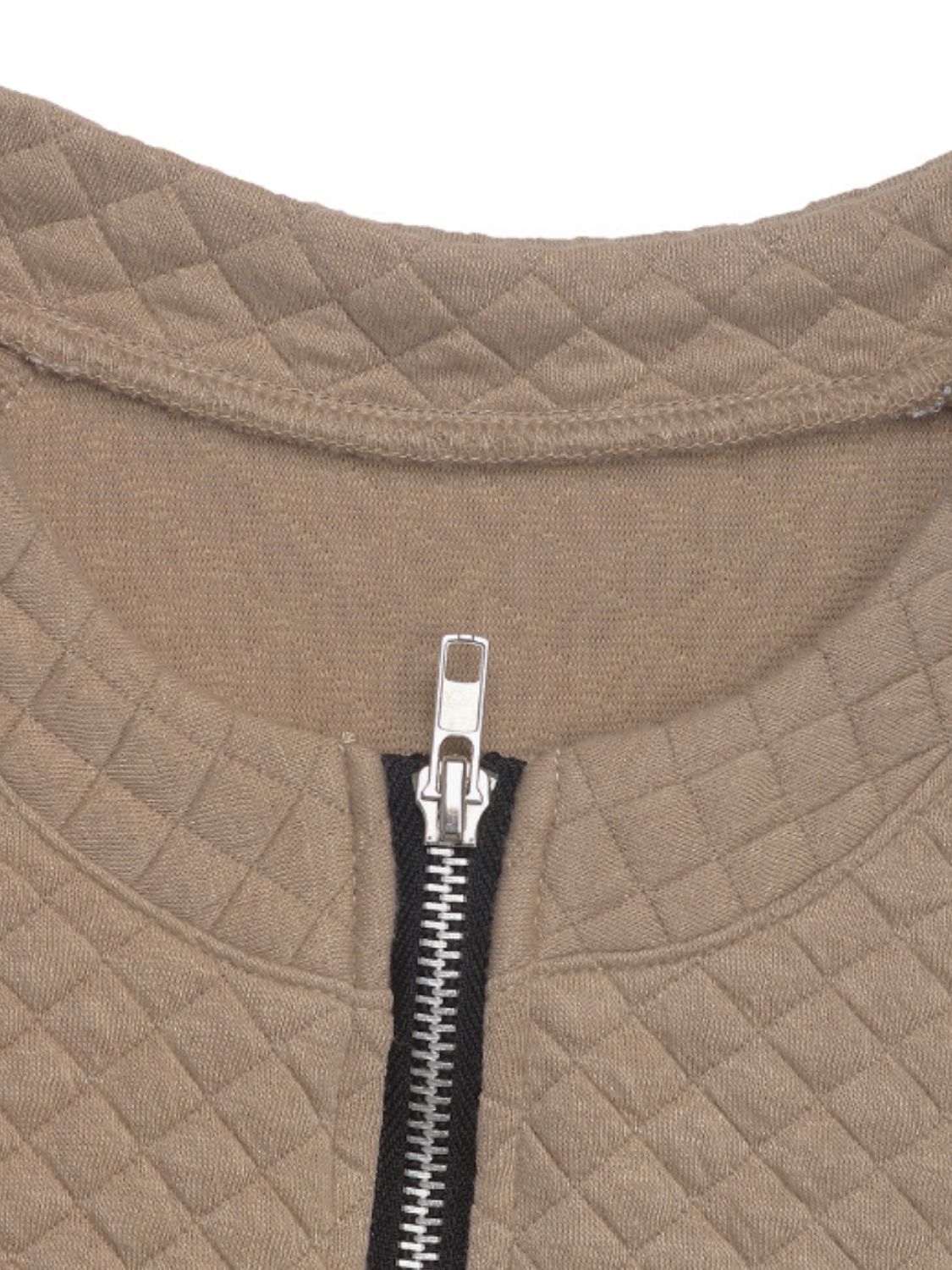 Perfee Plaid Half Zip Long Sleeve Texture Sweatshirt