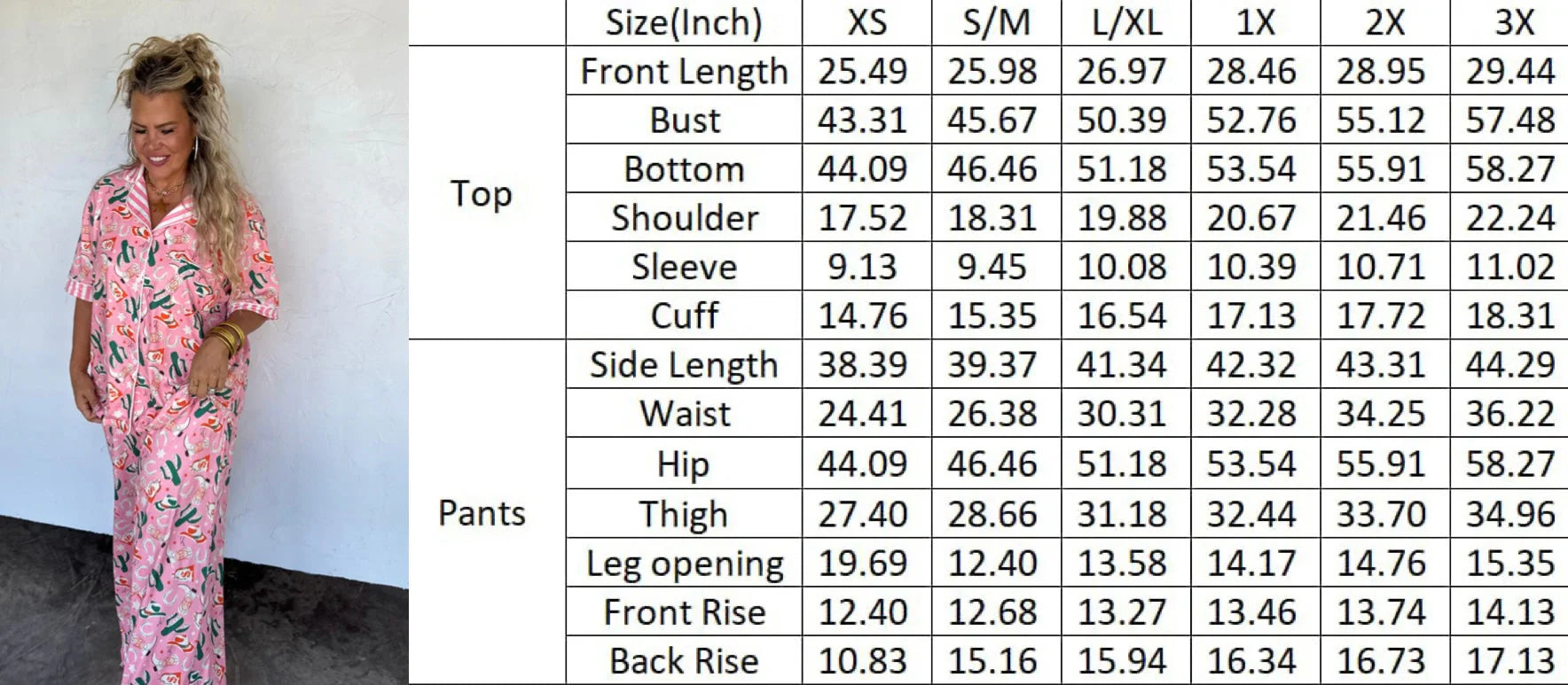Our NEW Western print Luxe Pj Lounge sets are the perfect sleep set for both comfort and style. Features a button-up top with short sleeves and matching pants, with cute designs that will keep you looking good while you relax. The fabric is ultra-soft, STRETCHY and lightweight for a relaxed feel. Pants have pockets and elastic waist. Feature solid color piping on all trim for an extra "luxe" look!