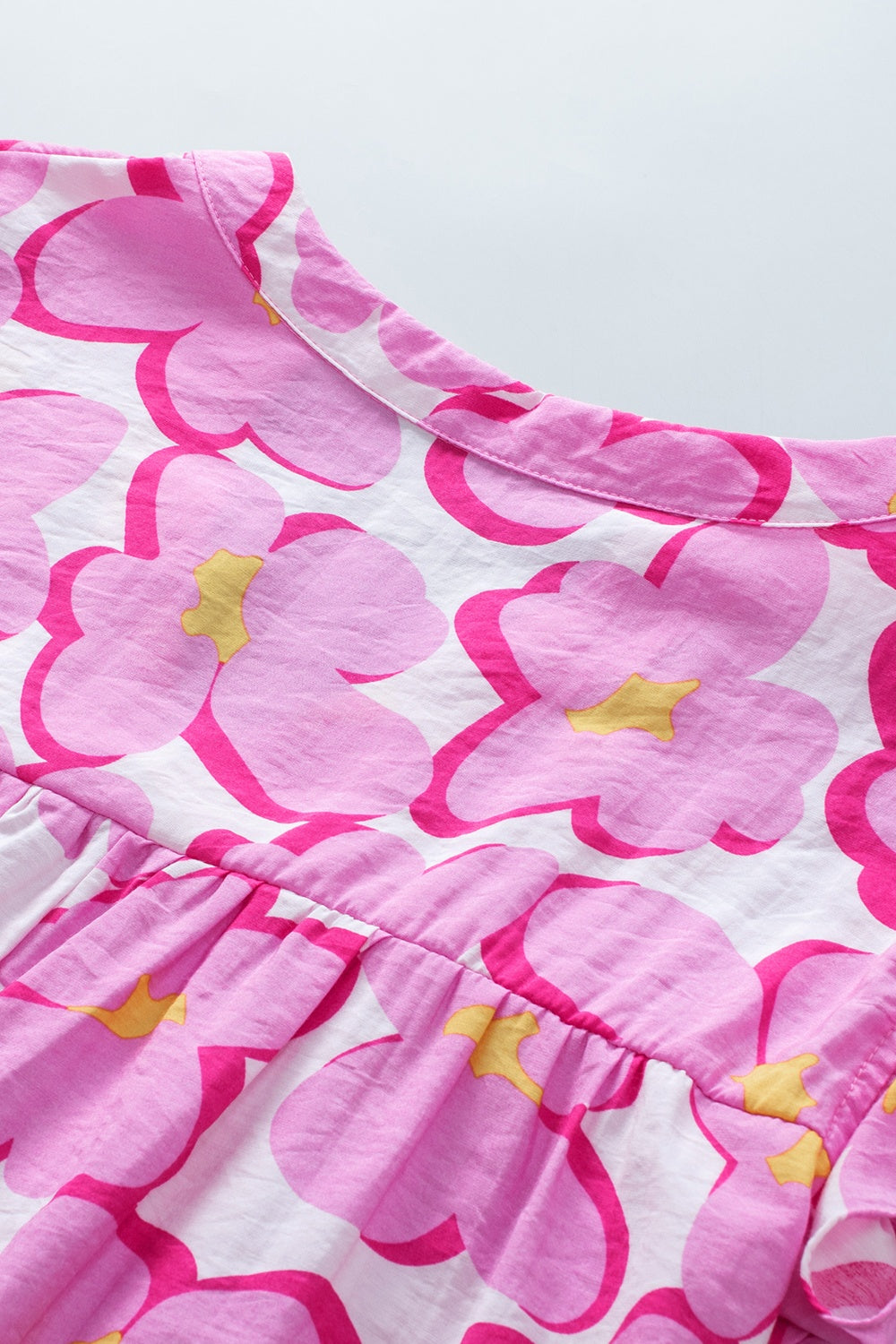 Ruffled Printed Notched Cap Sleeve Blouse